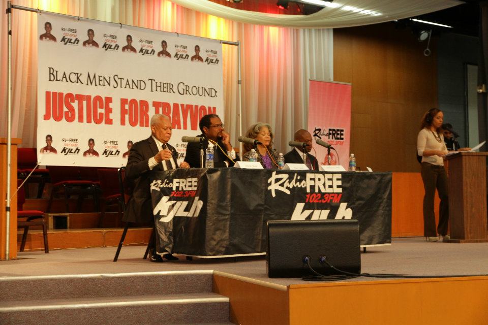 Los Angeles, Calif – Los Angeles radio station KJLH-FM, the leading broadcast radio station for African-Americans and urban consumers in Southern California, hosted a town hall meeting entitled “Black Men Standing Our Ground: Justice for Trayvon Martin” on Saturday, March 31, 2012 in Inglewood, Calif. at Faithful Central Bible Church.