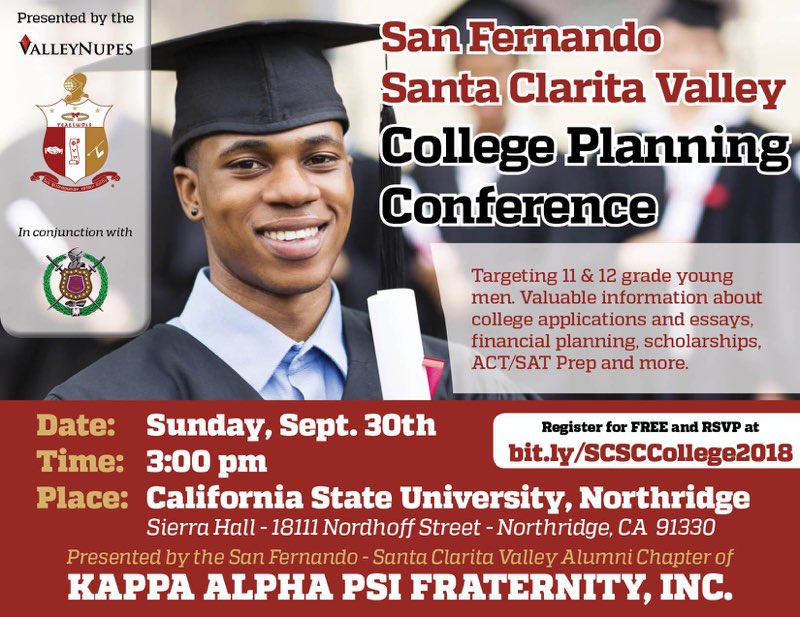 Please join the Valley Nupes for the 2nd Annual San Fernando – Santa Clarita Valley College Planning Conference that will focus on African-American male students in grades 11- 12. The purpose of this event is to increase the college preparation, enrollment, and graduation rate for African-American male students. During the event, we’ll discuss: