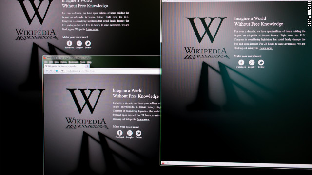 (CNN) — Wikipedia was one of several websites that shut down at midnight in protest of anti-piracy bills that critics say could amount to censorship.
